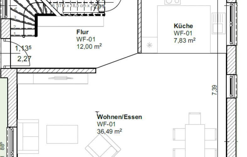 – Wohnen / Essen – Kochen ca. 44,32 m²